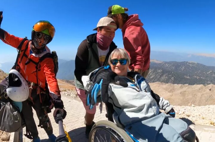 Antalya'nın Kemer ilçesine tatile gelen bedensel engelli Natalia Averchanka, Tahtalı Dağı'nın doruğundan yamaç paraşütü...